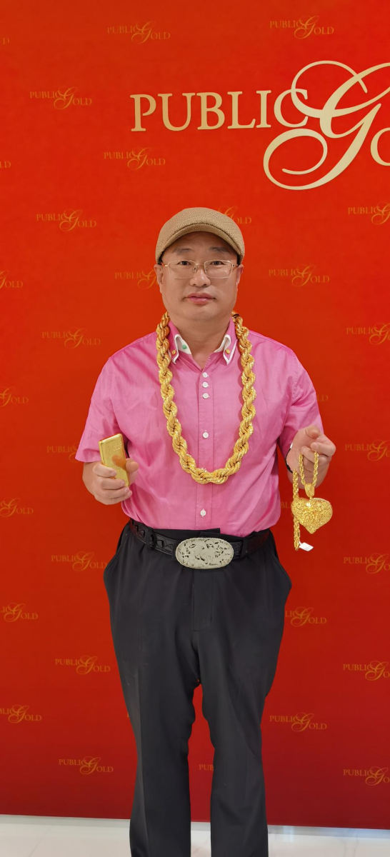 中国企业家代表余斌先生(中)试戴黄金大项链