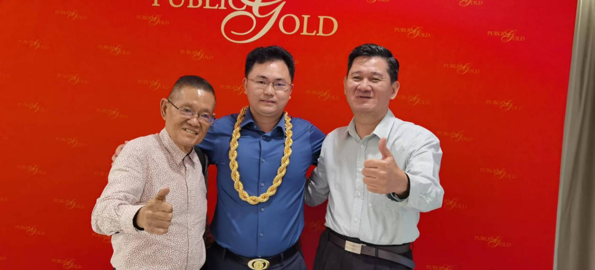 中国代表团顾问白爱军先生现场向众人“打广告”展示马来西亚“大众金行”的黄金饰品