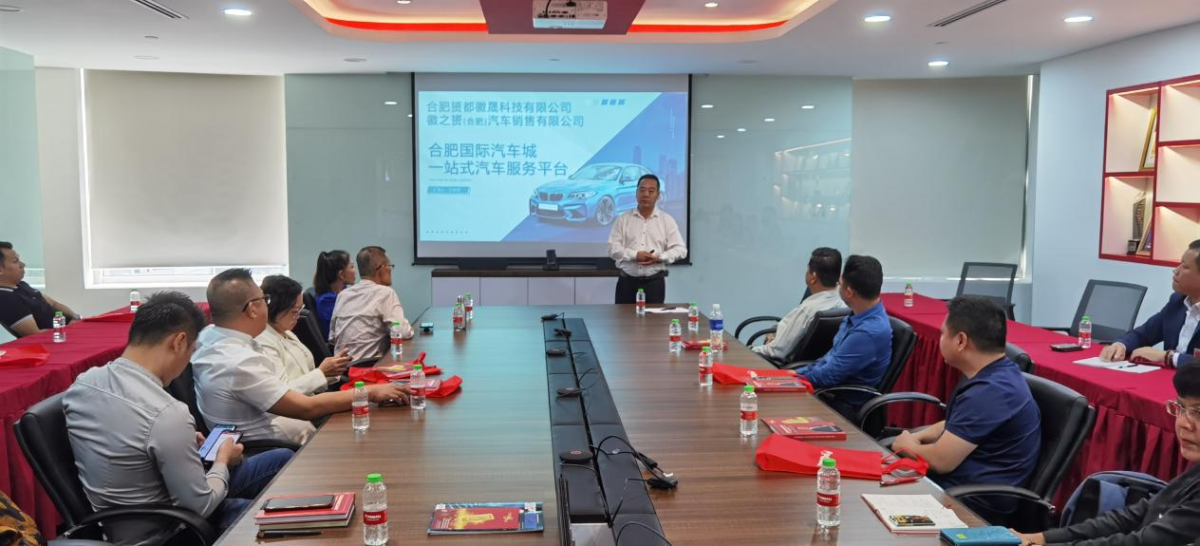 中方企业家代表吴新春向马来西亚朋友介绍绿色新能源汽车的经营投资情况