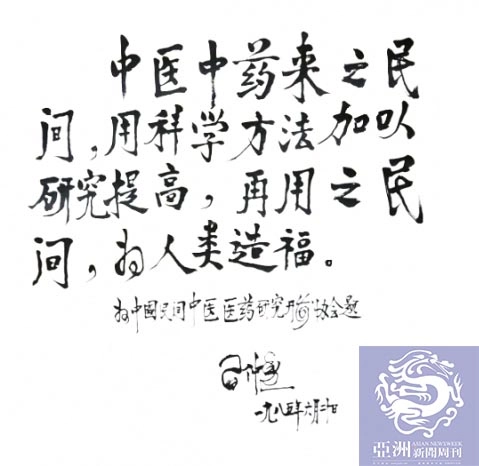 原中国道教协会会长任法融道长为道医学分会题字