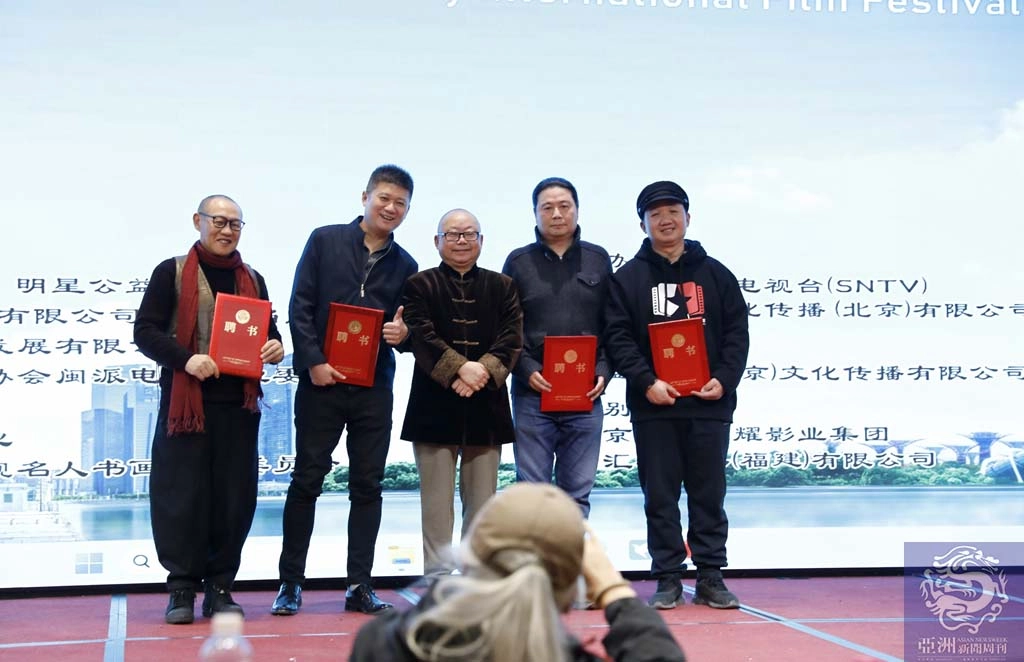 电影节组委会主席莫耀辉先生为组委会成员、顾问廖京生、王郁涛,组委会执行主席江小鱼,组委会副主席史健全、祝延平、韩月乔、刘涛、李兵、饶雪漫、鲍大志、宋晓英、华子、孙树培、夏当、陈太源(新加坡)颁发证书。